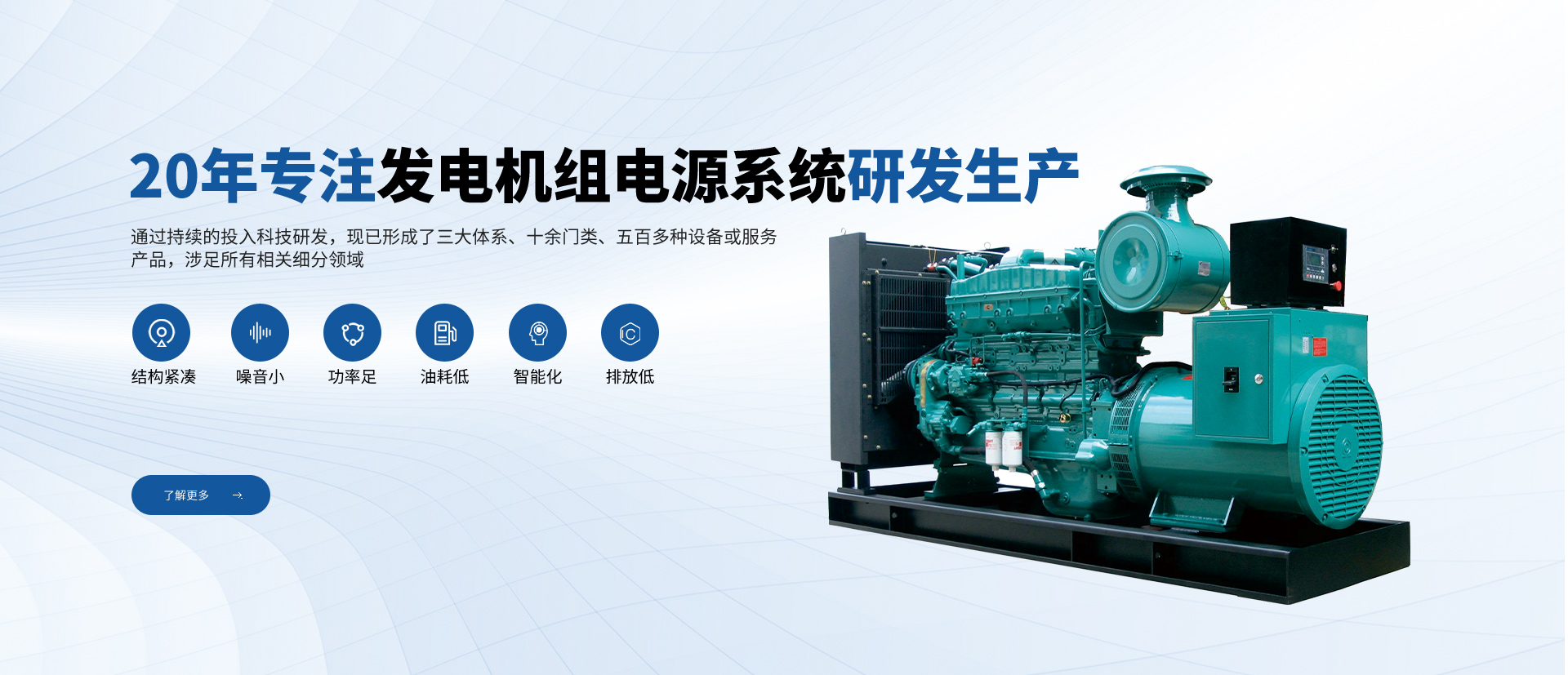 公司一直專注于高品質(zhì)發(fā)電機組及配套設(shè)備的研發(fā)、生產(chǎn)、銷售和售后服務,致力于為用戶提供完美的產(chǎn)品和服務。從全球知名配套廠商優(yōu)選零部件及組件,優(yōu)勢組合,打造名牌發(fā)電機組產(chǎn)品。公司在全國設(shè)立多處銷售服務網(wǎng)點,體系遍布全國大中城市。